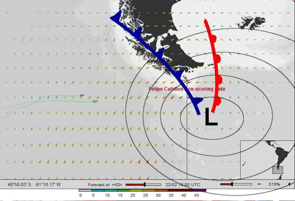 Assis devant la table à cartes, Hugo et moi téléchargeons un fichier météo qui confirme le pire scénario. Le centre dépressionnaire passera juste au sud du Cap Horn dans moins de trois jours, impossible d’y échapper. Nous allons devoir affronter la tempête de plein fouet, pile au passage du front, au moment le plus risqué.