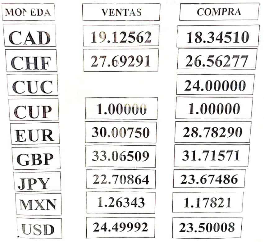 Le taux de change varie selon la devise que vous apportez et selon l’endroit où vous l’échangez. Les CADECA affichent les taux à l’entrée, souvent sur un écran. Pour calculer votre montant en CUP, multipliez la somme à échanger par le taux d’achat (« Compra/Buy »). Exemple : pour 100 CAD, avec un taux à 18,3451, vous repartez avec environ 1 835 CUP. Notez que les taux peuvent différer légèrement selon que vous changez dans un hôtel, un port ou un aéroport, et qu’ils sont réajustés deux fois par semaine.